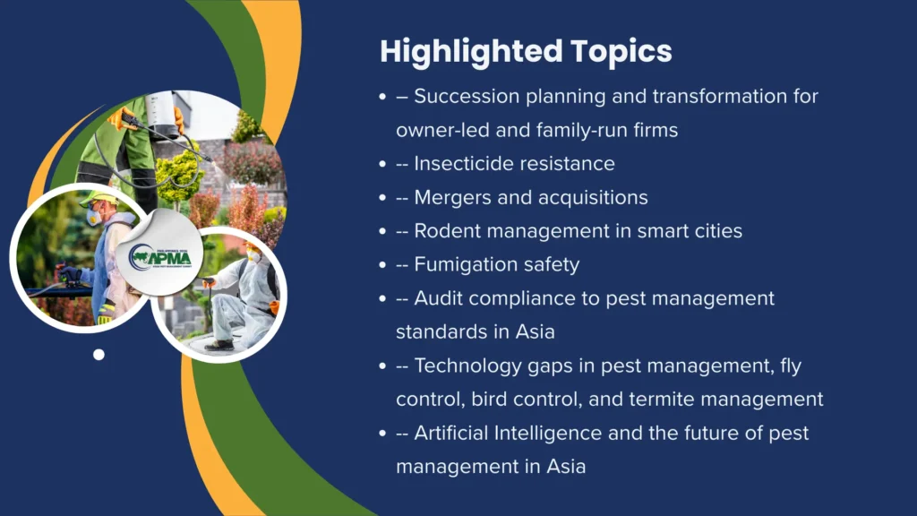 The APMA Summit is for professionals advancing pest management across Asia—pest control operators, entomologists, food safety teams, facility managers, researchers, government regulators, and technology innovators. If your work involves improving safety, sustainability, or systems in pest management, this summit is built for you.
